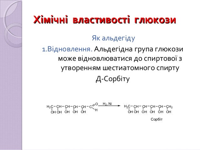 –альдегідну та гідроксильні , отже вступає в реакції, характерні для альдегідів та багатоатмних спиртів.